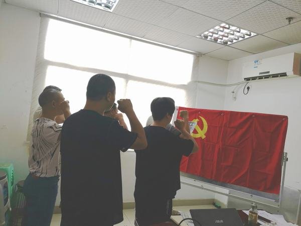活動最后,由袁小峰領(lǐng)誓,帶領(lǐng)全體黨員重溫入黨誓詞。