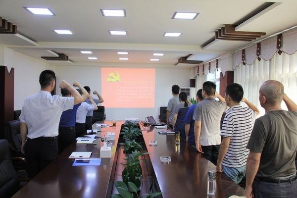 溫慶生首先回顧了99年來(lái)黨的光輝歷程,闡明了在“七一”前夕召開(kāi)支部大會(huì)、開(kāi)展主題黨日活動(dòng)的特殊意義。在溫慶生的領(lǐng)誓下,全體黨員佩戴黨徽面向鮮紅的黨旗莊嚴(yán)宣誓,鏗鏘有力的誓言,再次彰顯了共產(chǎn)黨人的初心和使命。