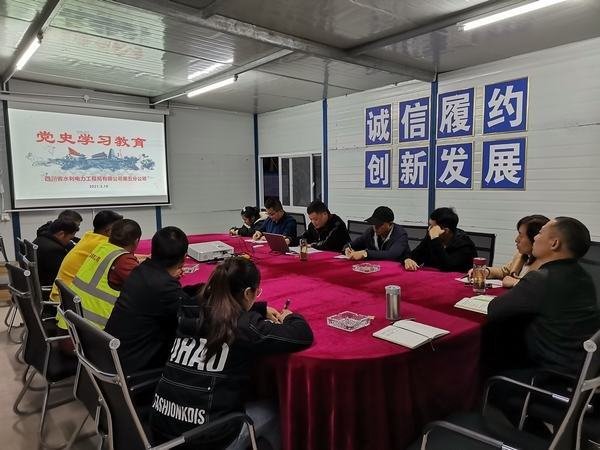 六分公司黨支部在青神虎渡溪項(xiàng)目組織黨員及青年職工開展黨史學(xué)習(xí)教育(2021.04.17)