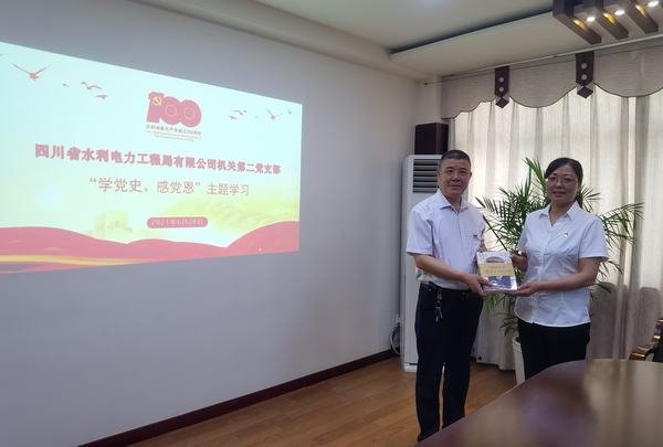 在慶祝中 國 共 產 黨成立100周年之際,2021年6月28日下午,公司機關第二黨支部在資陽辦公區301會議室組織召開黨員大會。公司黨委書記、董事長代勇,黨委專職副書記唐驚濤,黨委委員、紀委書記陳盛華,黨委委員、工會主席、黨委工作部部長夏永紅以普通黨員身份參加會議。工會副主席、機關第二黨支部書記付麟麗主持會議。