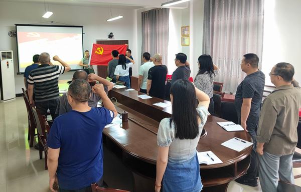 活動首先由黨支部副書記、工會主席高代勝帶領全體黨員面對鮮紅的黨旗,舉起右手,莊嚴宣誓:“我志愿加入中國共產黨……隨時準備為黨和人民犧牲一切,永不叛黨。”鏗鏘恢宏的誓詞,字字句句神圣而豪邁,強烈震撼著在場的每一位黨員,重溫入黨時的莊嚴承諾,再次在黨旗下接受心靈的凈化和洗禮,筑牢共產黨員政治責任和擔當使命的堅定決心。