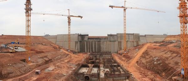 本月共完成土石方開挖填筑 28萬m³,砼23932.5m³。