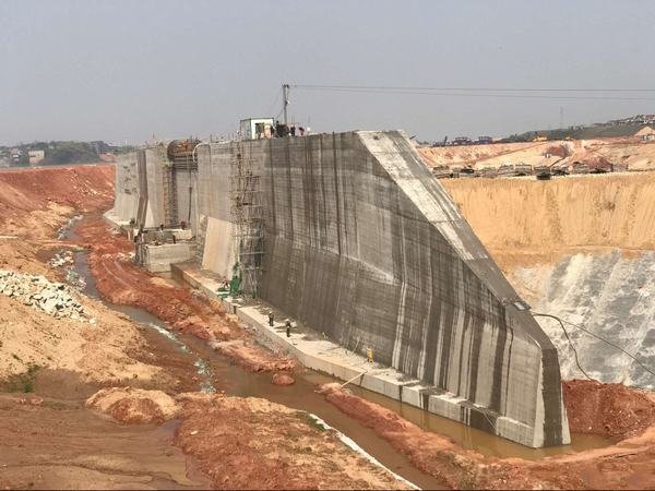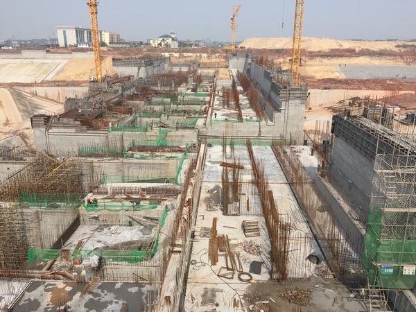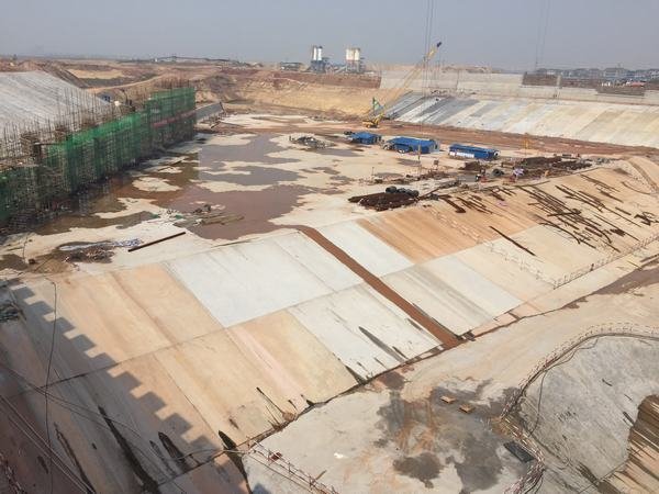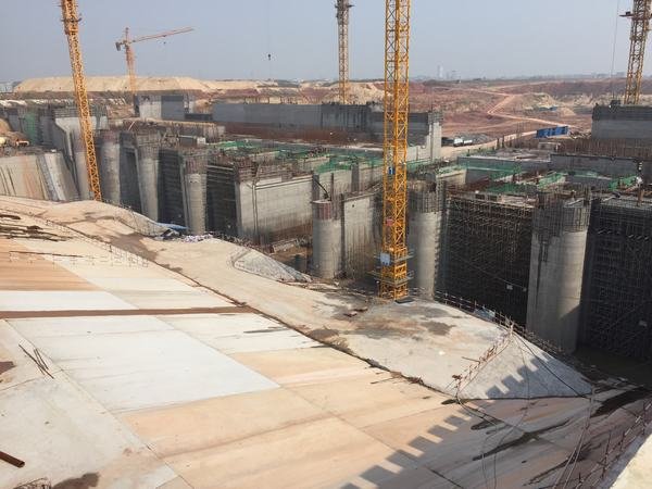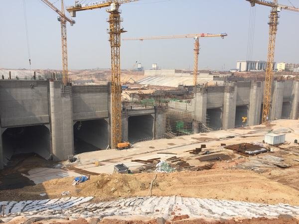 安裝間副廠房進水流道進水渠前池尾水流道魚道二期基坑全景圖三期縱向圍堰閘壩