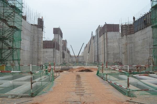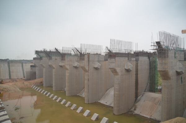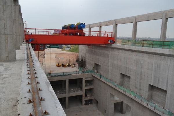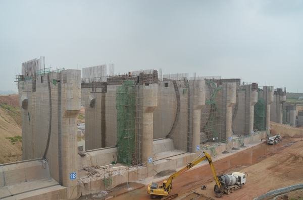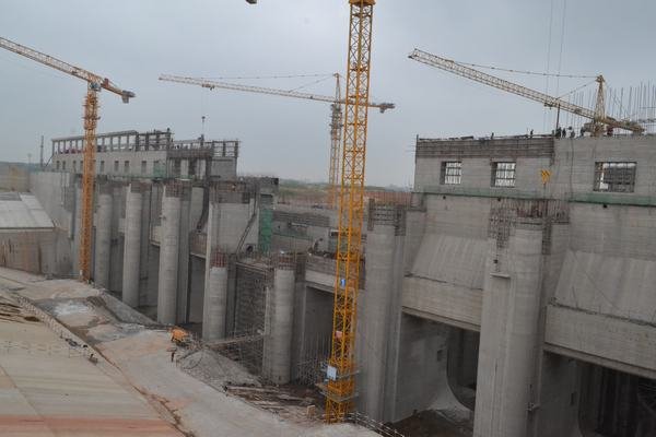 發(fā)電廠房進(jìn)水口橋機(jī)安裝船閘全景閘壩上游閘壩下游
