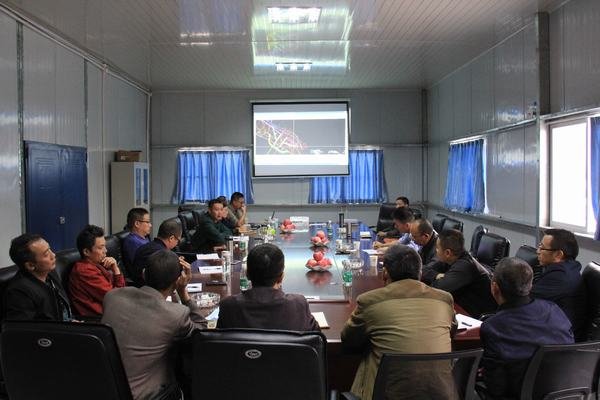 開工儀式結束后,代勇、袁斌一行在毛偉等陪同下查看了工地現(xiàn)場,當日下午,項目部召開了施工技術研討會議,袁斌、但凱在會上提出意見并作要求。