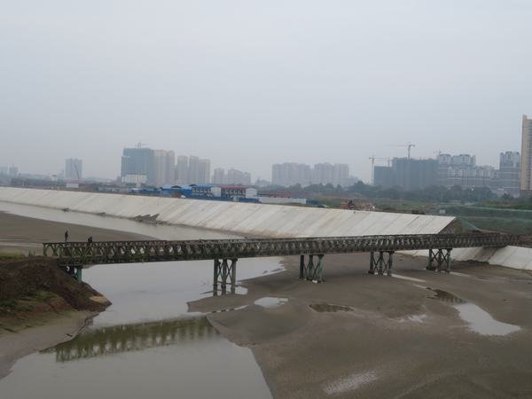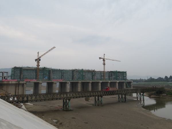 二枯上游橫向圍堰二枯施工貝雷橋(全長105m)二枯下游橫向圍堰攔河閘左岸上部結(jié)構(gòu)施工
