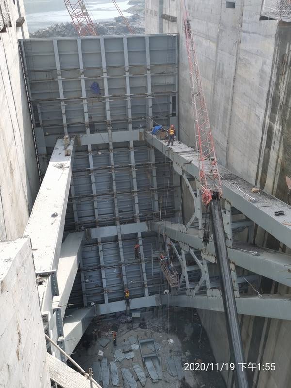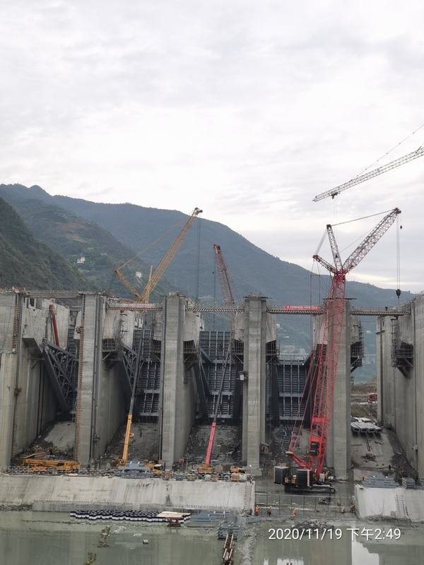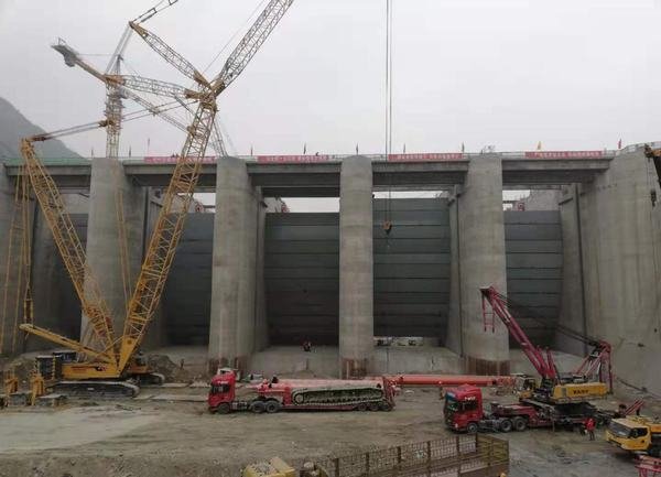 2020年12月15日,由機械廠承建的旬陽水電站左五孔金屬結(jié)構(gòu)安裝項目,經(jīng)過全體參戰(zhàn)人員81天的奮戰(zhàn),順利完成了主體項目(弧門門葉、弧門支臂、弧門支鉸座、油缸支鉸、油缸、液壓啟閉機構(gòu))安裝工作。