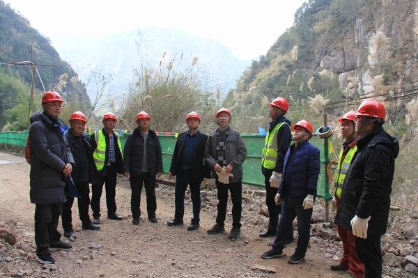 2021年2月8日,公司黨委書記、董事長代勇,黨委委員、副總經理茍仕聰,副總工程師、技術中心主任但凱,黨委工作部部長夏永紅一行到“引大濟岷”金雞峽水庫壩址勘探平硐項目工地現場檢查指導工作。