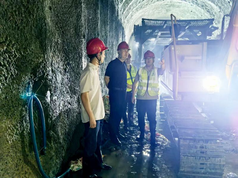 袁斌深入施工一線,實地查看了V標段沱江管橋、黃巔咀隧洞和Ⅳ標段百里沖綜合加工廠、新窩咀隧洞等,了解當前各工區(qū)的施工進展情況。施工現(xiàn)場負責人就工程進度、存在問題及應(yīng)對措施做匯報,袁斌進一步詢問項目下一步施工計劃并提出意見建議。