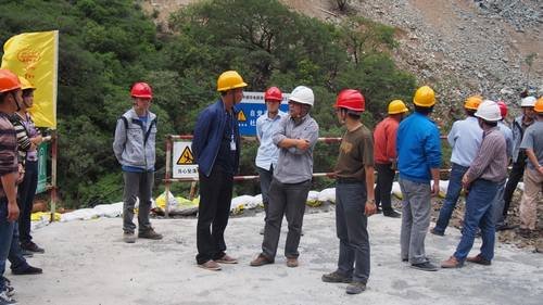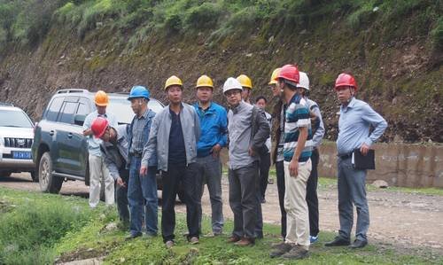 2014年8月16日下午,水洛河公司副總經理蔣達、公司工程部副主任汪浩、安全生產部副主任鐘馳,固滴建管部主任晏國順、監理部總監姜象成等,在工程局水洛河固滴水電站首部樞紐項目部常務副經理毛偉、項目總工鄭中華、工程部部長張方清、經營管理部部長林華、質量安全部部長姬瑛等的陪同下,察看了由我單位承建施工的固滴電站首部樞紐工程施工建設及防洪度汛安全情況。
