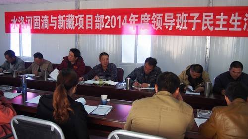 2014年11月26日,水洛河固滴、新藏項目部2014年度領導班子民主生活會在水洛河新藏項目部會議室召開。項目部班子成員、全體黨員、各部門負責人及職工代表參加本次會議。會議由固滴項目部黨支部書記毛偉主持。