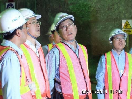 2014年11月21日,中國水利電力對外公司總經理王禹在總經理辦公室主任池黎、財務部主任程書權、經營部主任王乃倫、中水南美公司總經理王劍鋒、副總經理趙曉明、中水厄瓜多爾TP項目部經理衛云的陪同下,視察我局承建的厄瓜多爾TP項目取水口閘壩工地和地下廠房工程。