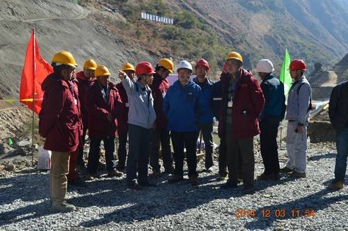 2014年12月3日上午,水洛河公司總經理蒲春雨、副總經理周有志、工程部副主任汪浩、固滴建管部主任晏國順、監理部常務副總監張鳴生和設計等一行蒞臨固滴電站首部樞紐工程施工現場檢查指導工作,察看了由我局承建施工的固滴電站首部樞紐工程。局水洛河固滴水電站首部樞紐項目部常務副經理毛偉、副總工鄭中華、生產副經理張方清、安全副經理袁友軍及項目部門負責同志參加陪同。
