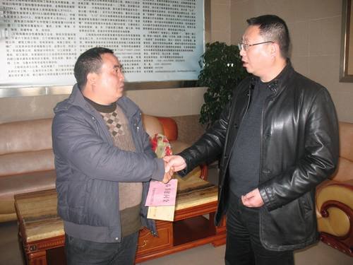 代勇對省級勞模、局都江堰辦事處主任鄔清貴進行了慰問,感謝勞模們?yōu)閱挝坏陌l(fā)展、職工的成長付出的心血和汗水,并致崇高的敬意!隨后,在鄔清貴及都江堰辦事處黨支部書記、工會主席孫代華等陪同下,代勇一行慰問了精神病患者、在2008年地震中失去妻子的困難職工盧朝東,身患眼疾的困難職工龍達治,為他們送上慰問金和慰問品,并與他們親切交談,詢問目前的工作生活情況,送去了局黨委、行政、工會的關(guān)心問候及新春祝福。同時,把鄔清富局長、局紀(jì)委書記王裕明給結(jié)對幫扶職工的慰問金分別送到了因燒傷致殘的馬理及盧朝東手中,對組織的關(guān)懷和領(lǐng)導(dǎo)的關(guān)愛,他們表示誠摯的感謝。