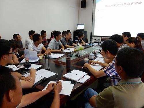2015年7月31日至8月1日上午,局第四工程處在毗河工程項目部會議室召開2015年上半年工作總結及內部交流培訓會。處級領導、各項目和部門負責人以及毗河項目全體員工共41人參加會議,會議由毗河項目部總工張亮亮主持。