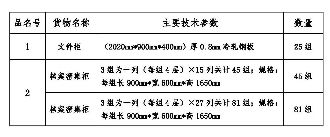 1.2供貨周期:此次采購分三批供貨,首批擬在2021年9月開始供應密集架45組(600mm×900mm×1650mm);第二批擬在2022年3月供應密集架81組(600mm×900mm×1650mm);第三批擬在2022年6月供應文件柜25組(900mm×400mm×2020mm)。簽訂合同后,所列項目清單貨物交付完成約需10個月。
