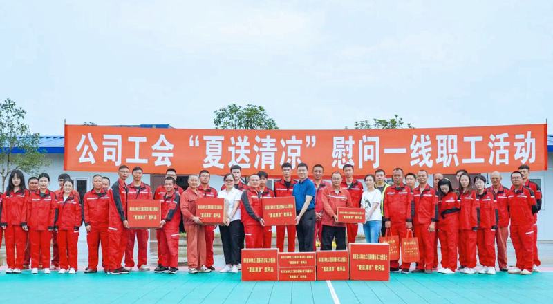 8月5日,公司黨委委員、職工董事、工會主席夏永紅,紀委委員、工會副主席付麟麗,工會辦公室主任秦利一行到青神虎渡溪航電樞紐工程項目開展“夏送清涼”慰問及工作調(diào)研,為一線職工送上防暑降溫物品,帶來組織的關(guān)懷。