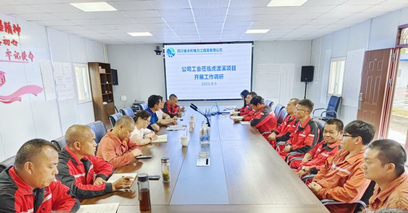 夏永紅一行在虎渡溪項目部會議室組織召開了調(diào)研座談會,認真聽取項目部工作情況及職工的建議與期盼,并深入發(fā)電廠房、船閘等施工作業(yè)部位察看項目施工情況。夏永紅代表公司及公司工會向戰(zhàn)斗在虎渡溪航電工程項目的全體干部職工致以親切慰問和衷心感謝,對項目部全體干部職工發(fā)揚“不懼艱險、不畏疲勞、無私奉獻、勇挑重擔”的水利鐵軍精神,變壓力為動力,提前完成節(jié)點目標任務(wù)予以充分肯定。付麟麗對項目部班子團隊及參建各單位干部職工付出的辛勞和取得的成績點贊,并結(jié)合全年工會工作計劃,提出堅持以人為本,促進安全生產(chǎn);圍繞中心工作,開展勞動競賽;竭誠服務(wù)職工,做好困難幫扶;豐富文化生活,增強職工歸屬感四點意見。秦利就工會經(jīng)費、會員會費的收繳及使用流程、相關(guān)注意事項作了強調(diào)。