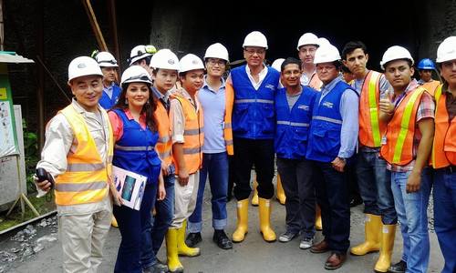 截流儀式之前,厄瓜多爾副總統率學生團隊到我部施工的地下廠房、尾調室及交通洞進行了視察,對項目工程質量、安全、進度給予了高度評價和肯定,并與該項目中厄員工合影留念。